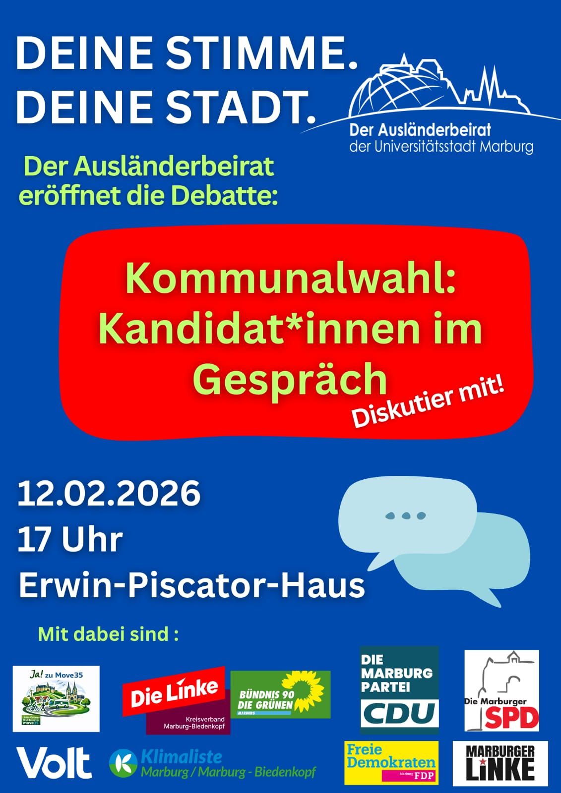- Deine Stimme, deine Stadt - Der Marburger Ausländerbeirat lädt Parteien zur Podiumsdiskussion am 12. Februar ein